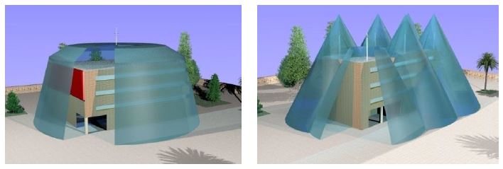 La protección que podemos ver en la figura de la izquierda (con 1 pararrayos PDC) podríamos obtenerla solo con 6 pararrayos Franklin (como en la figura de la derecha).