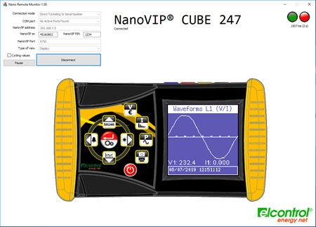 El analizador de redes NanoVIP® CUBE 247™ puede manejarse completamente usando el teclado y directamente desde sus manos; no se pierden ninguna de sus funciones al trabajar en modo remoto.