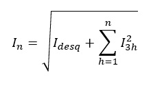 Se puede concluir a partir de la ecuación que la corriente total es la raíz cuadrada de la sumatoria de todos los corrientes múltiplos de la corriente fundamental elevadas al cuadrado.
