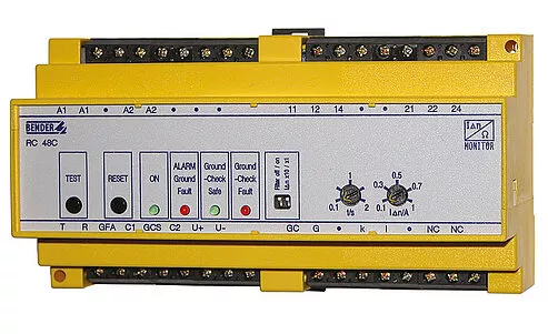 - Monitor de falla a tierra para instalaciones conectadas a tierra a través de alta resistencia con una corriente de falla limitada de 5…25 A
